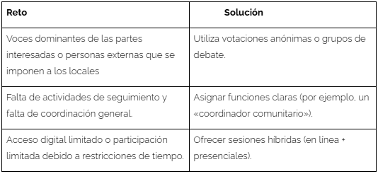 Piensa en las posibles barreras para los participantes: si utilizas una herramienta digital, piensa en cómo facilitar la participación de los usuarios con bajos conocimientos digitales.