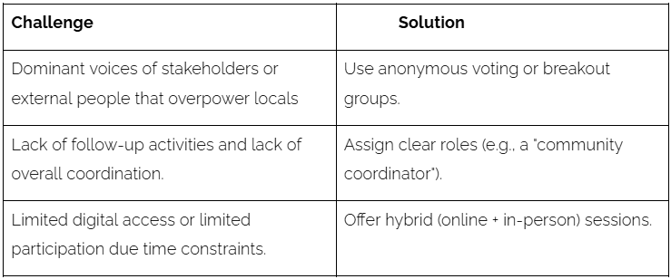 Think of potential barriers for participants: if you put in place a digital tool, think of how to facilitate the participation of users with low digital skills.