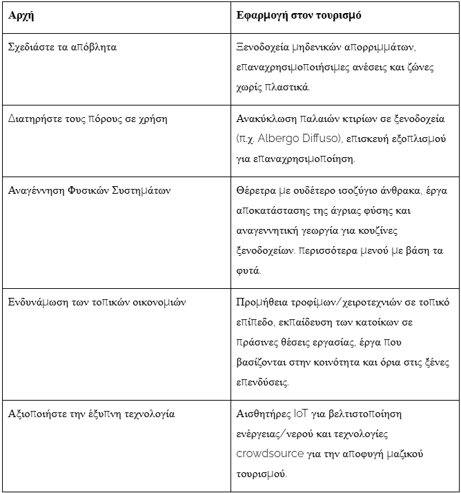 Παραδείγματα τουριστικών κόμβων κυκλικής οικονομίας: